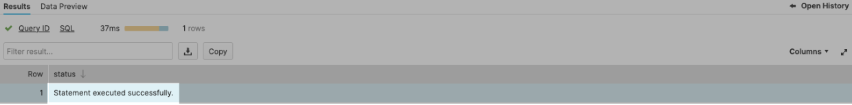 Every query in the script will be executed at once. If all goes well, you'll see the glorious "Statement executed successfully" message in the query results.