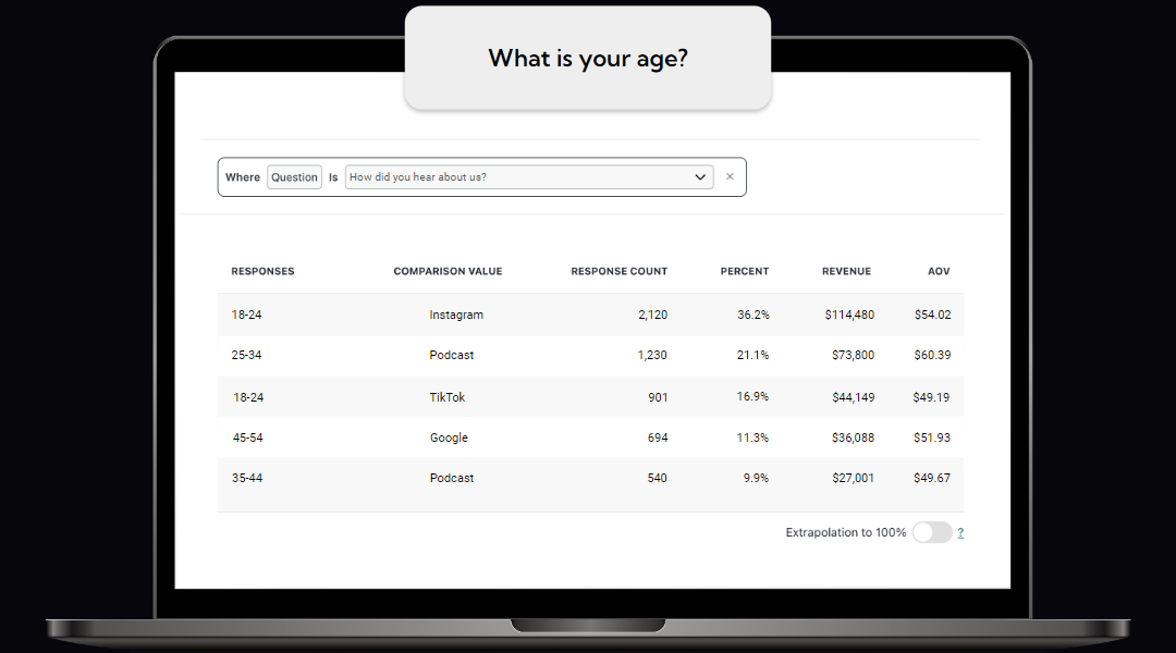 Curiosity led them to build their Question Stream® centered on attribution, lifestyle, and demographic questions like "What is your age?" This was an insightful endeavor to understand their clientele's pulse. And they came upon a revelation - a spirited Gen Z crowd on TikTok, waiting to be tapped.