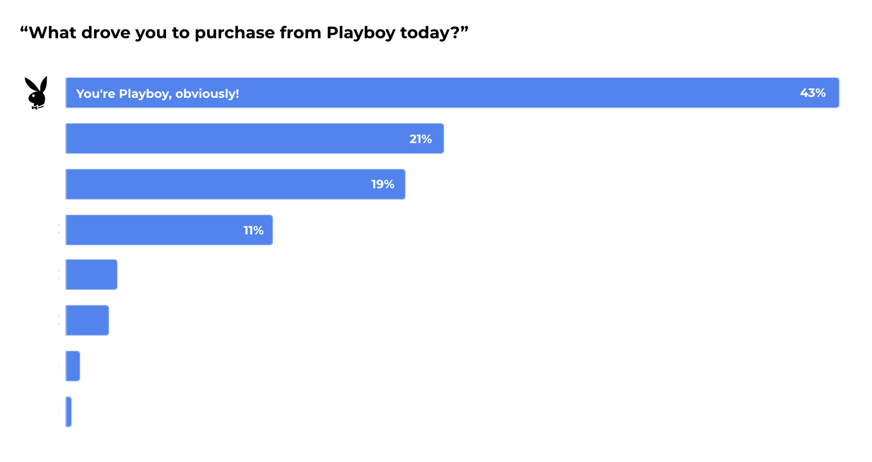 Reviewing these Other responses revealed a common thread: the vast majority of customers were trying to tell Playboy, “you’re Playboy, obviously.” And in following best practices, that’s exactly the response WITHIN added to the brand’s survey question… with clear results: