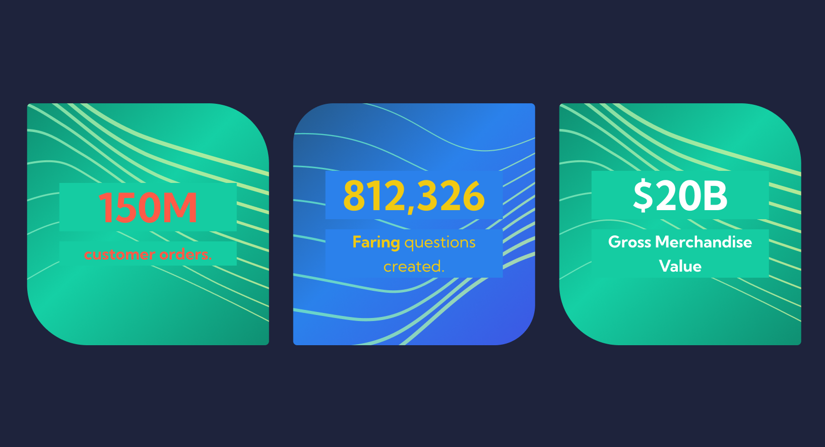 In 2023, our journey included processing millions of queries across over 150 million orders for thousands of brands. Over $20b of GMV had a Fairing question on it.