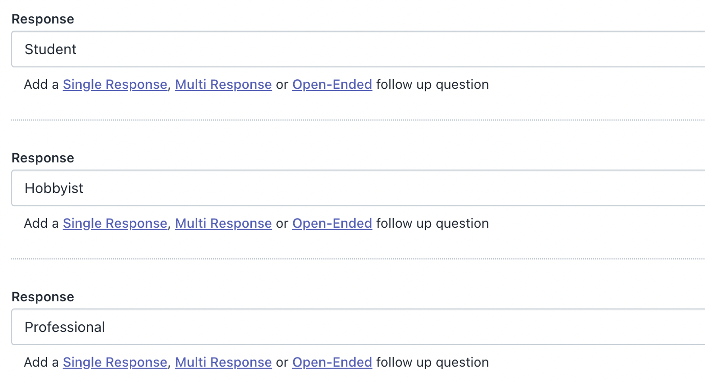 For example, suppose customers are letting you know that they are hearing about you through influencers. Then you can ask them which influencer in a follow up question.