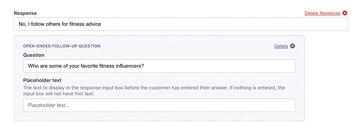 A follow-up question helps to operationalize these insights, and the key here is that each response deserves a different type of follow-up. For example, if the response is “No, I follow others for fitness advice”, you might aim for a clarification like this: