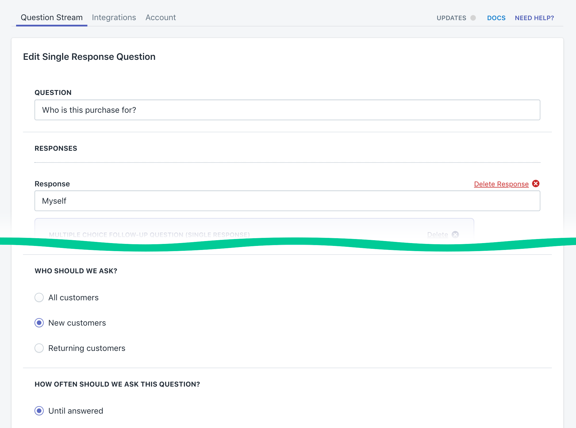 Within your Question Stream™, there are two powerful ways to uncover this valuable information. The first is a higher-level question: " Are you switching from another brand? " A simple yes or no response unveils a world of insights. If the answer is no, it means your brand is the guiding light, teaching consumers the ways of your category. If the answer is yes, it's time to delve deeper with our follow-up question feature and discover precisely which brand you're winning market share from.