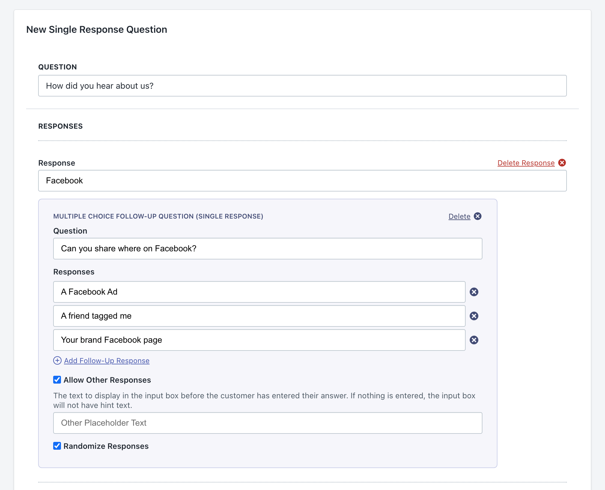 Responses are a different story: you know the specifics of your brand and market, so in most cases we left those open for editing. Remember, none of the cards from Question Bank will go live until you’ve had a chance to edit it, save and enable.