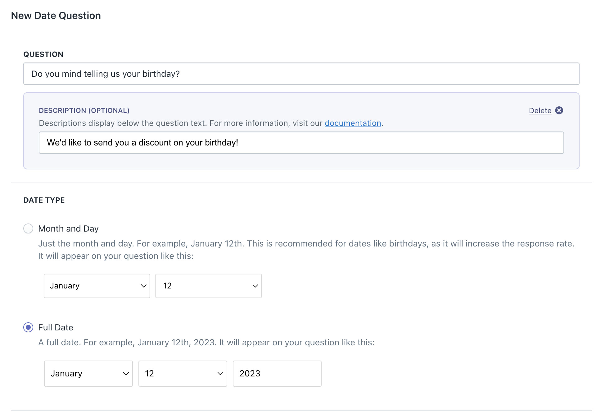 For example, you ask your customers “ When is your birthday? ” knowing when your customers’ birthdays are can be a personalization powerhouse. But for that information to be useful, you need it in the same format every time so you use a dropdown.